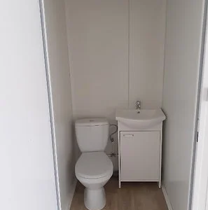Sanitaires : cuvette WC, meuble vasque, chauffe-eau électrique 5 L – de quoi disposer d’un espace de repos fonctionnel