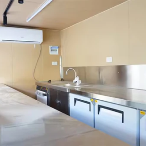 Transformez un conteneur maritime standard en un véritable point de vente attractif et parfaitement fonctionnel. Conçu pour les professionnels de la restauration rapide, de la vente à emporter ou des commerces éphémères, ce module de 6 mètres allie visibilité, praticité et économie. Sa façade intégre un comptoir spacieux idéal pour servir les clients, tandis que son aménagement intérieur a été pensé pour faciliter le rangement et l’organisation. Avec ses équipements électriques, son système d’eau autonome et ses options de personnalisation, il constitue une alternative bien plus abordable qu’un local traditionnel, sans compromis sur l’efficacité.